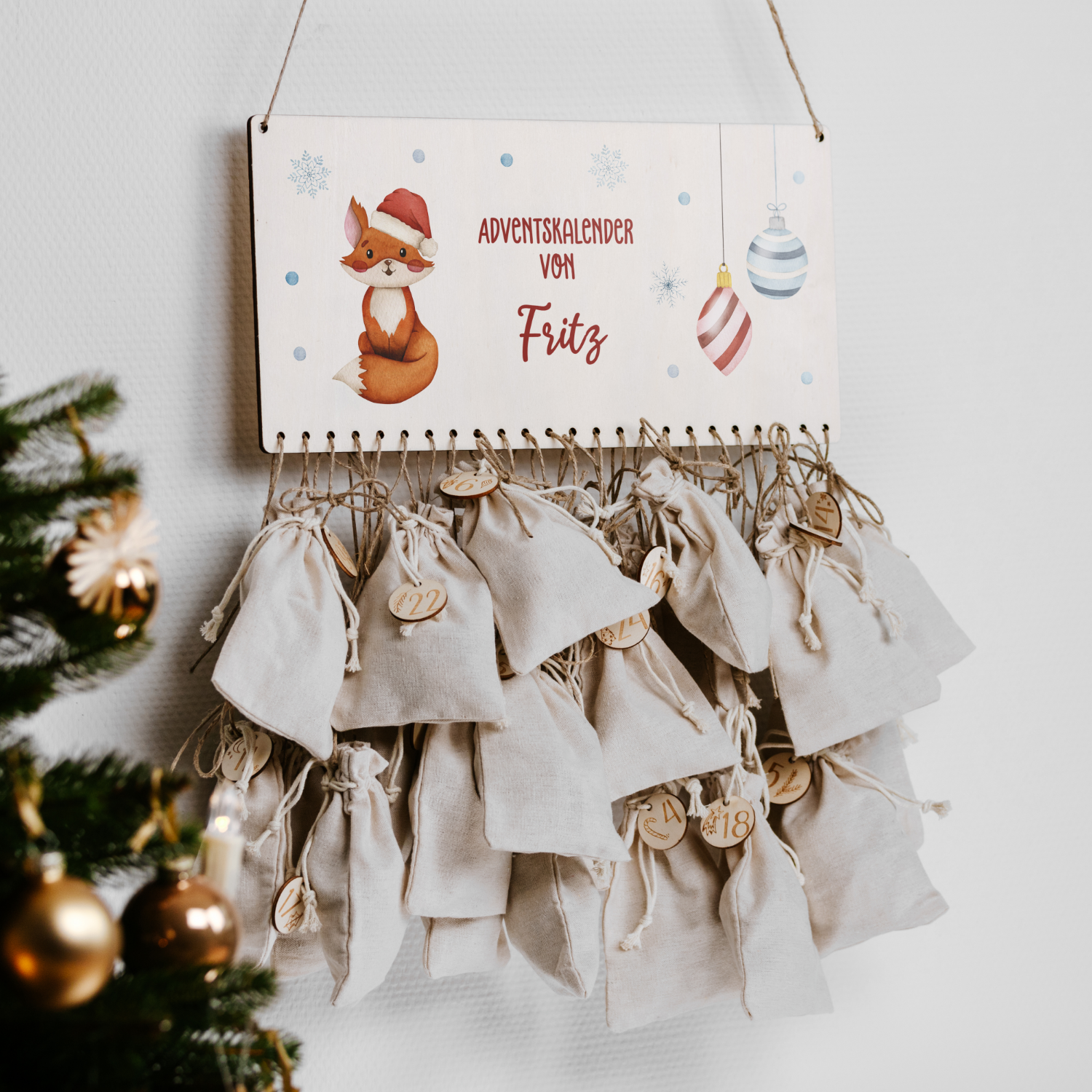 Gestalte das Adventsbrett nach deinen Vorstellungen – mit Name des Kindes und Weihnachtsmotiven, die den Advent noch magischer machen.