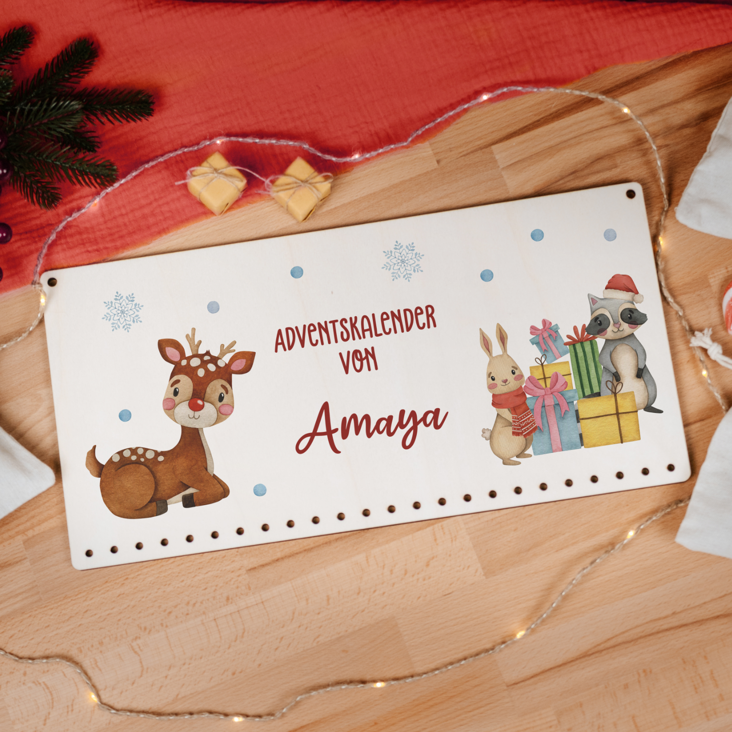 Adventskalender Brett | Design 02 | Rudolf mit Freundebande