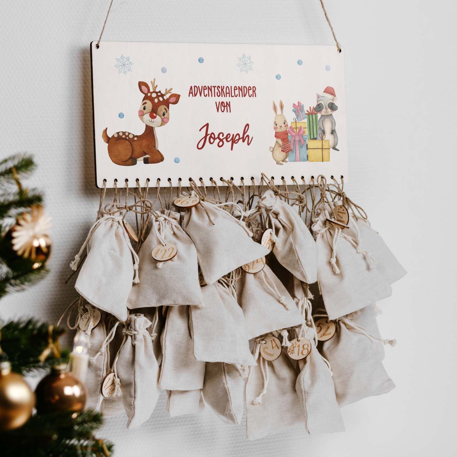Gestalte das Adventsbrett nach deinen Vorstellungen – mit Name des Kindes und Weihnachtsmotiven, die den Advent noch magischer machen.