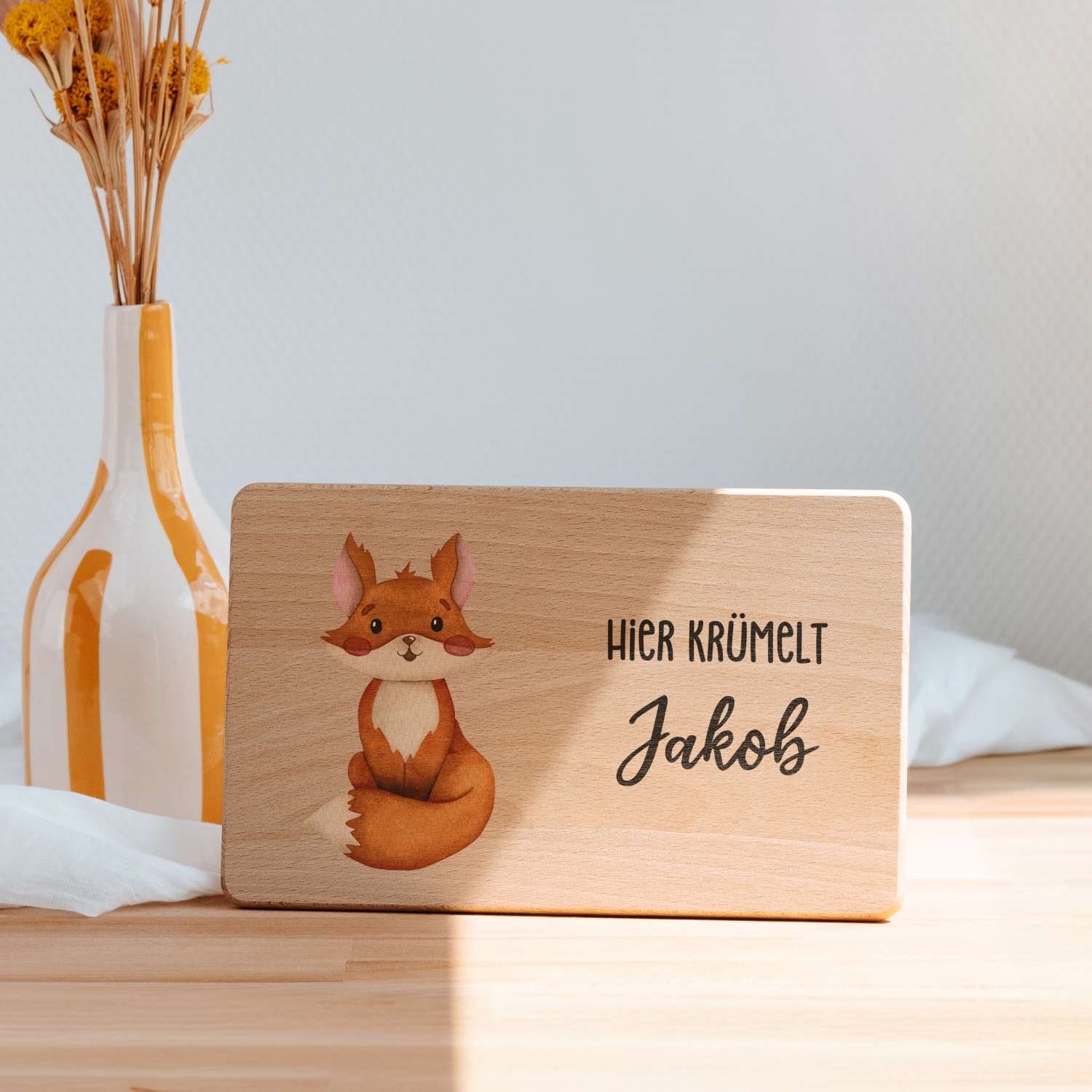 Ob für Brot, Obst oder kleine Snacks – das Brettchen ist vielseitig einsetzbar und sorgt mit seiner individuellen Gravur für einen charmanten Start in den Tag. Ein Highlight in jeder Küche, das Funktionalität und Ästhetik vereint.