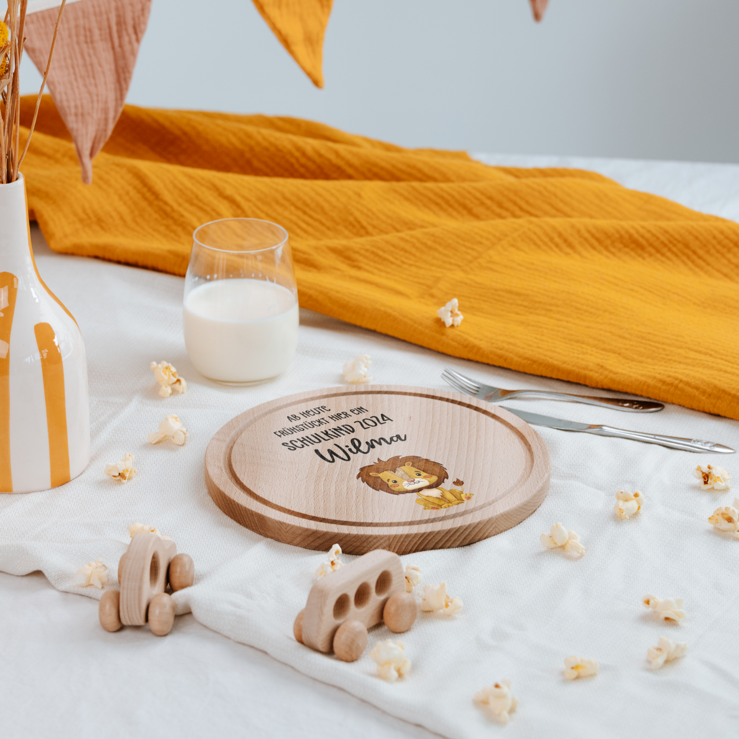 Ob für Brot, Obst oder kleine Snacks – das Brettchen ist vielseitig einsetzbar und sorgt mit seiner individuellen Gravur für einen charmanten Start in den Tag. Ein Highlight in jeder Küche, das Funktionalität und Ästhetik vereint.