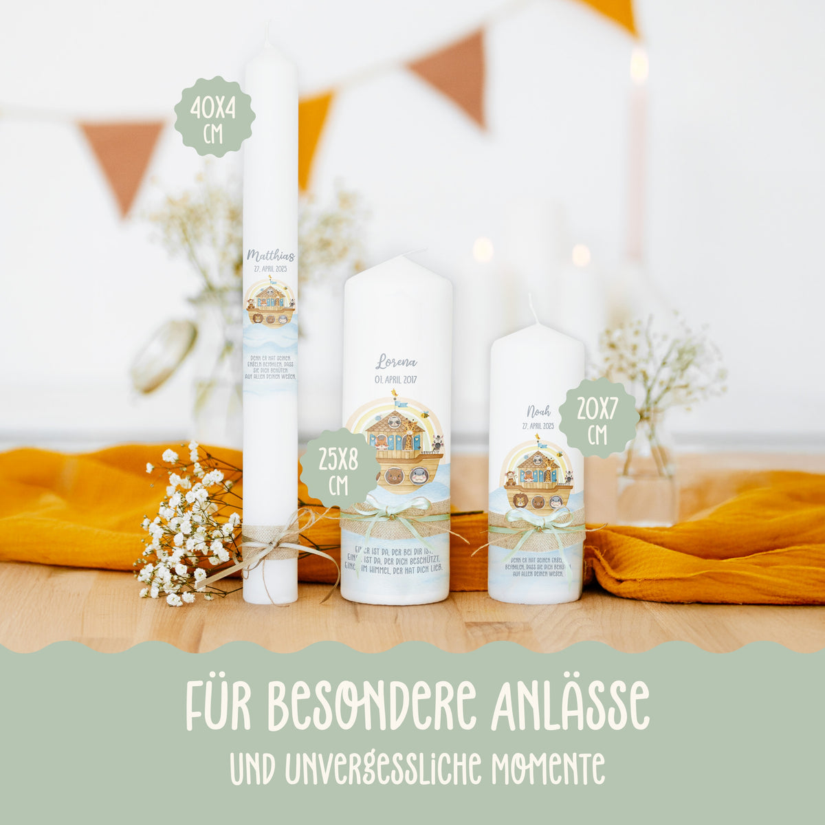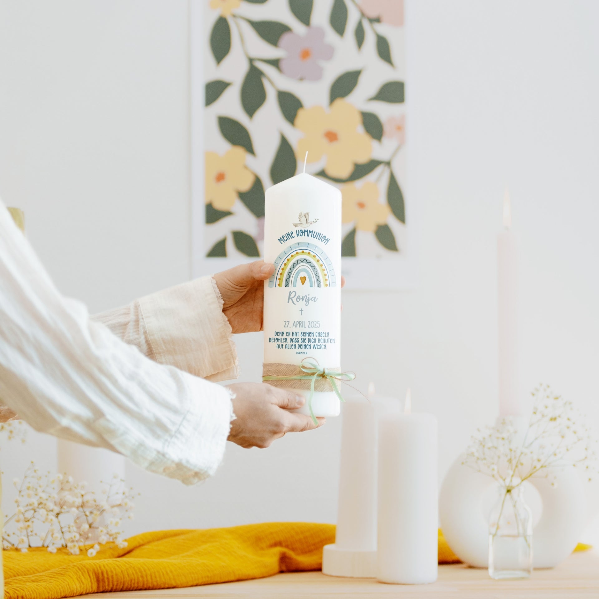 INDIVIDUELL GESTALTETE KERZE:Gestalte eine einzigartige Kommunionskerze mit persönlichem Motiv, Namen, Datum und optionalem Spruch. Wähle aus verschiedenen Farben und Größen und verleihe deiner Kommunionskerze mit zusätzlichen Accessoires eine besondere Note. 🕯️✨